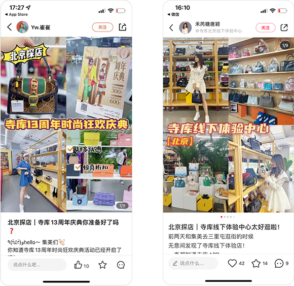 寺库奢侈品综合服务平台,在十三周年庆之际,邀请红书、大众点评达人到北京三里屯探店。结合线下店庆活动,带动线下超高人气,引爆活动现场。